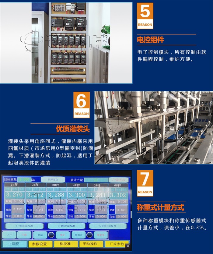 機(jī)適用于對(duì)流體5kg-30kg的計(jì)重量灌裝。自動(dòng)完成計(jì)數(shù)進(jìn)瓶、計(jì)重量灌裝、輸送出瓶等一系列操作。 特別適用于水劑、食用油,潤(rùn)滑油的定量灌裝,是食品,醫(yī)藥,化妝品以及精細(xì)化工等行業(yè)的包裝機(jī)。本機(jī)采用可編程控制器(PLC)、高速工控組態(tài)軟件進(jìn)行實(shí)時(shí)監(jiān)控的控制,使用調(diào)節(jié)方便。整機(jī)按GMP標(biāo)準(zhǔn)要求制作,各管路連接采用快裝方式,拆卸清洗方便,與物料接觸部位及外露部位均采用優(yōu)質(zhì)不銹鋼制造。整機(jī)安全、環(huán)保、安全、美觀、能適應(yīng)各種不同環(huán)境工作。