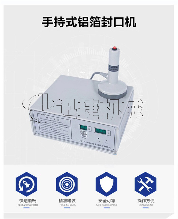 該該封口機(jī)為手持式鋁箔封口機(jī),是一種便攜式電磁感應(yīng)加熱封口設(shè)備,專為制藥、化工、農(nóng)藥、食品、化妝品、輕工行業(yè)對(duì)容器進(jìn)行鋁箔嚴(yán)密封口,封口材質(zhì)使用廣泛。