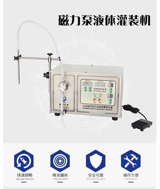 除此之外,液體灌裝機的上壓塊可以與泵頭本體分離,裝卡軟管方便,根據用戶需要,可串接多個泵頭,外形美觀、考究,結構緊湊、流量寬泛。方便OEM方式配套應用。具有定時功能,可實現半自動分配、灌裝具有半電流鎖定功能。這樣的灌裝機滿足很多生產需要,現在以及未來迅捷機械還會研發出更多的灌裝機設備,讓我們來期待吧!